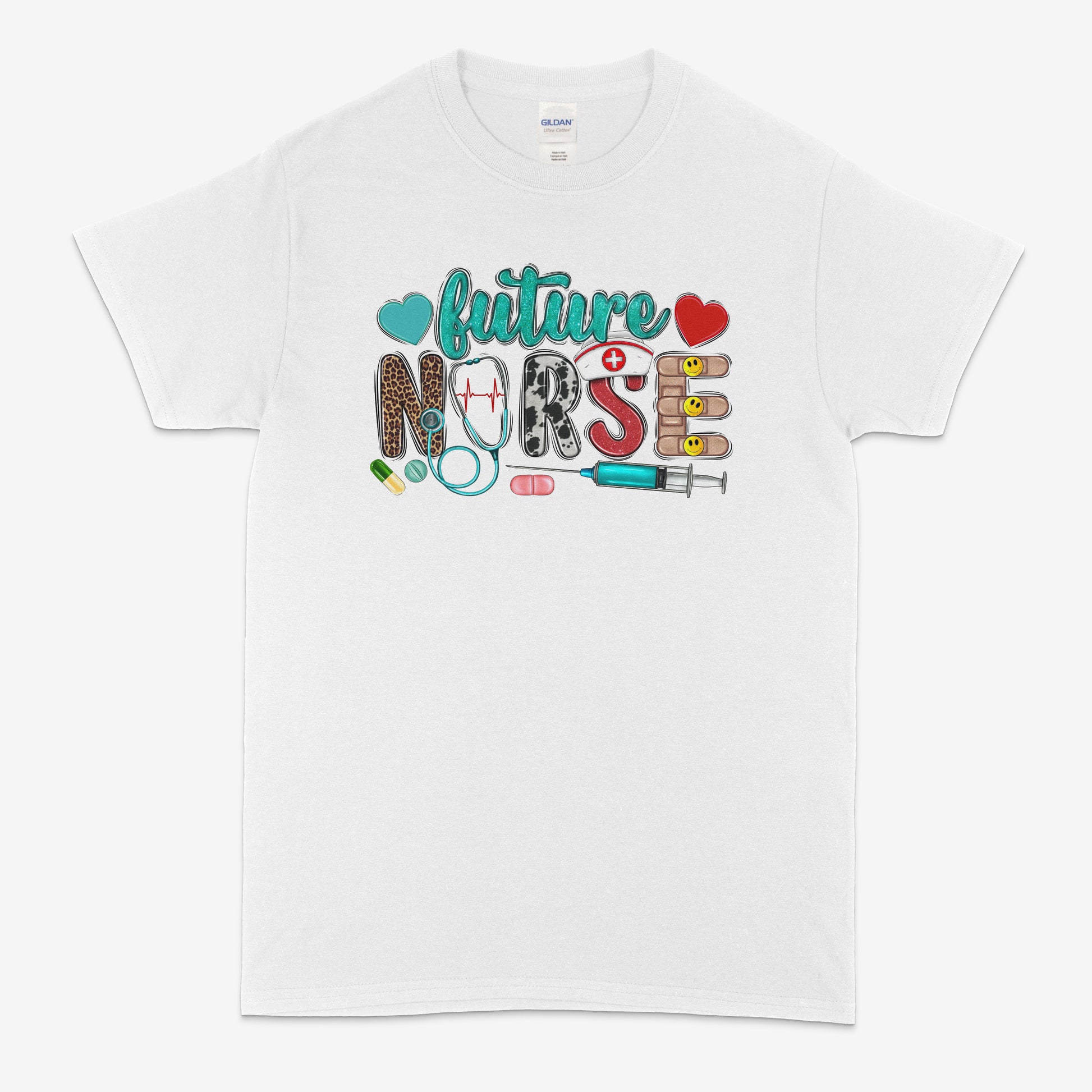 Cute, colorful, and full of ambition—this fun design spells out “Future Nurse” with each letter styled in a unique design. Perfect for nursing students at any stage of their journey, this tee and crewneck bring motivation and pride to your wardrobe. Whether you’re studying, heading to class, or celebrating milestones, it’s a cheerful way to rep your future profession.