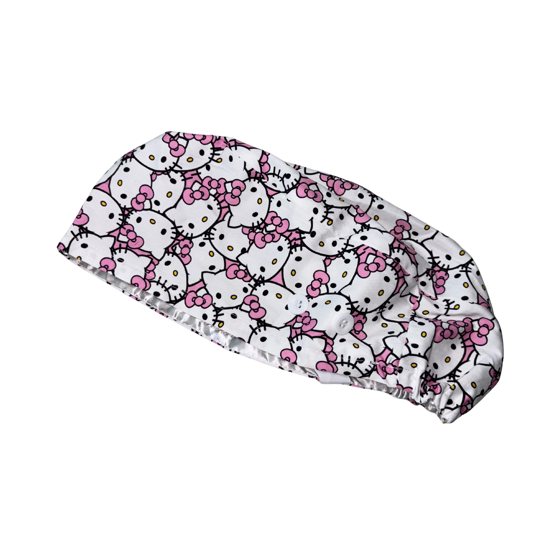 Stay adorable and protected all shift long with this light-pink Hello Kitty inspired scrub cap. Designed for nurses, estheticians, hair stylists, and anyone who loves a soft, girly aesthetic, this cap delivers both comfort and hair protection in one.