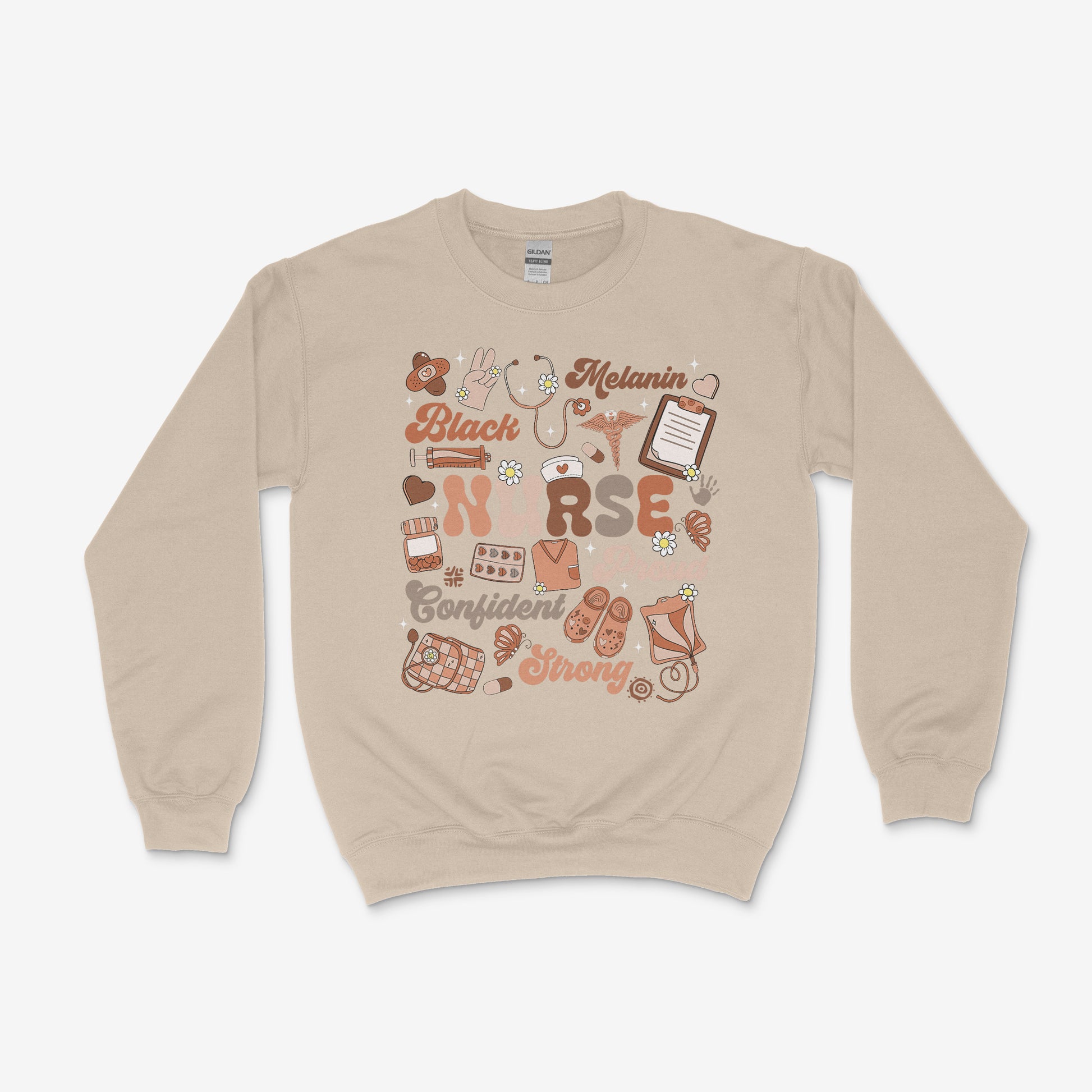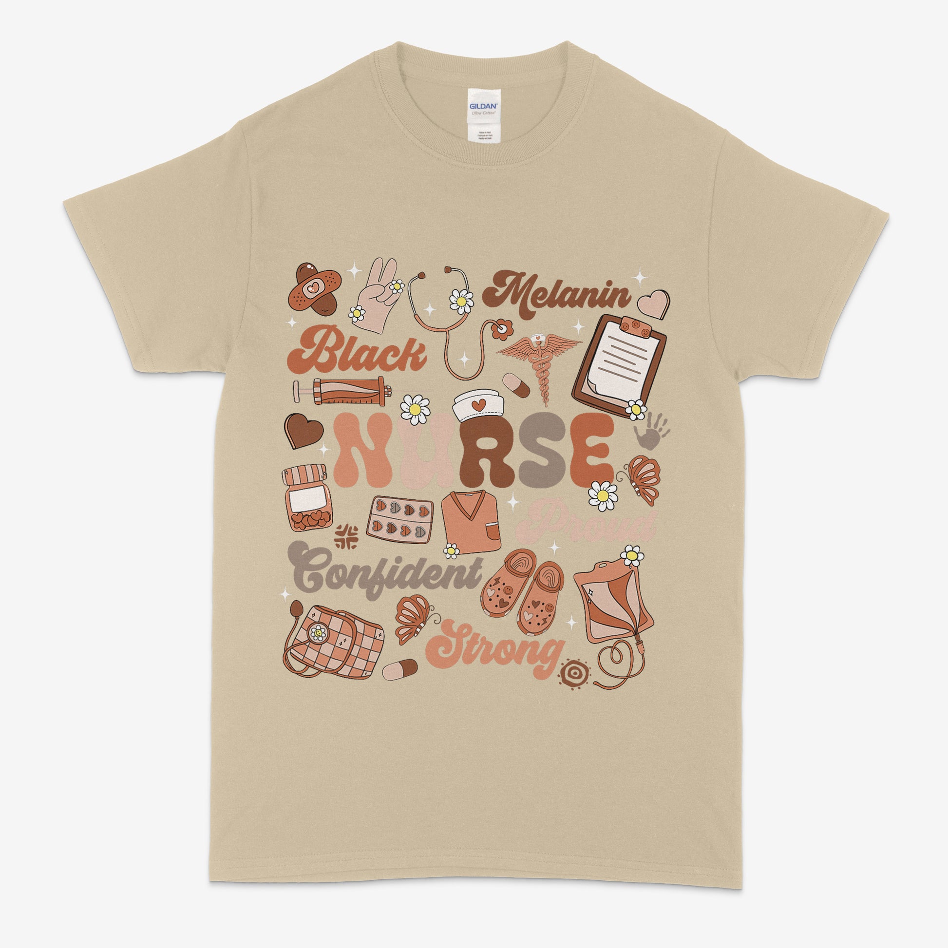 Celebrate your nursing journey with style that represents you! This cute beige design was made for melanin nurses who want to show pride in both their culture and their profession. Comfortable and versatile, it’s perfect for study days, clinicals, or relaxing in between shifts.