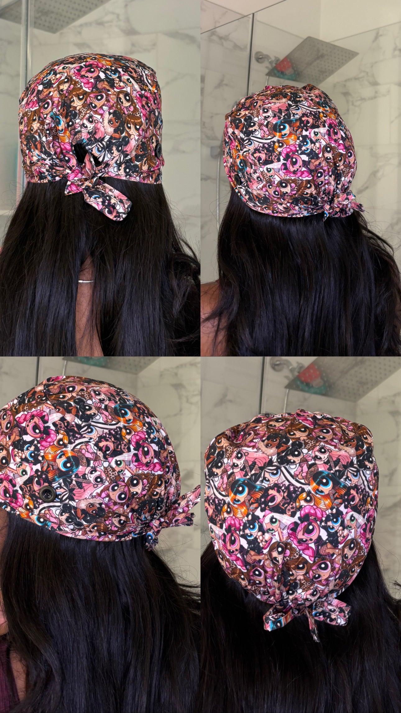Bring a little nostalgia to your shift with this adorable 90s-style scrub cap featuring a vibrant, Powerpuff-inspired print. Designed for healthcare workers, hair stylists, estheticians, or anyone needing a quick and stylish hair fix, this cap blends personality with practicality. The lightweight, breathable fabric keeps you comfortable through long days, while the adjustable tie-back ensures a secure fit for all hair lengths and textures. Whether you’re in the clinic, behind the chair, in the treatment room, or just having a not-so-great hair day, this cute cap has you covered—literally.