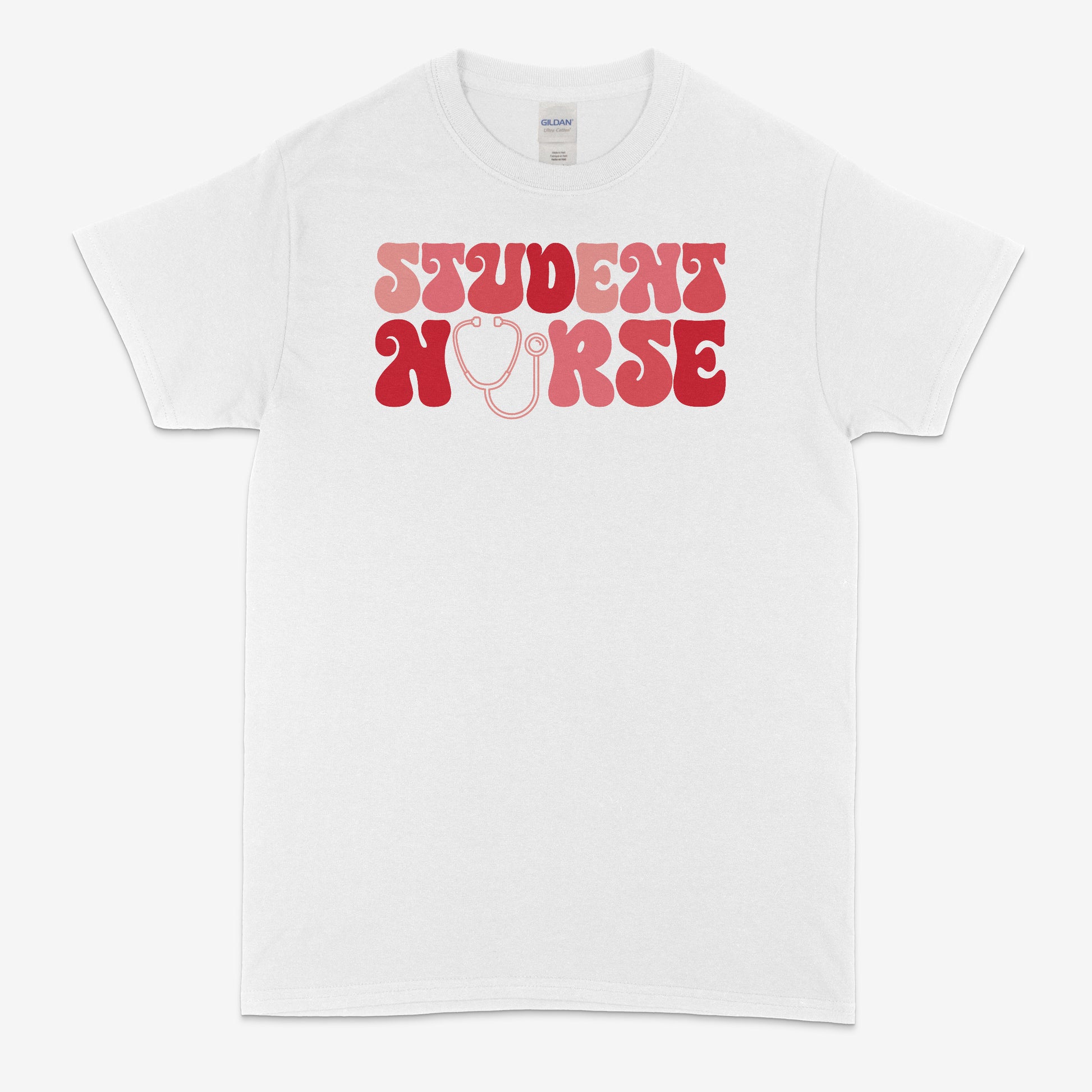 Show off your nursing journey in style! This cute design features “Student Nurse” in bold pink and red lettering with a stethoscope detail—perfect for anyone proud to be working toward their degree. Whether you’re in class, at clinicals, or studying late nights, this tee or crewneck is a comfy reminder of where you’re headed.
